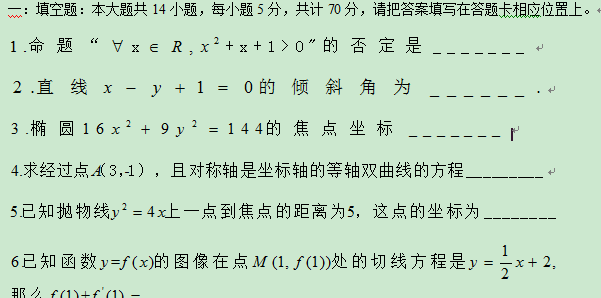 江苏省睢宁县菁华高级中学12-13学年高二12月学情检测(数学理)无答案
