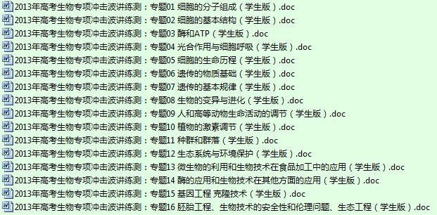 【打包】2013年高考生物专项冲击波讲练测(16份)学生版
