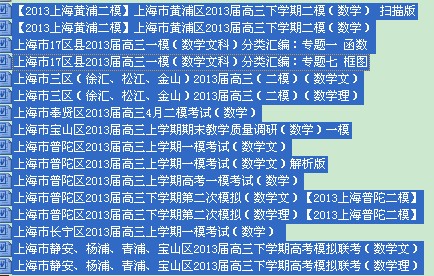 【打包下载】上海市各区(学校)2013届高三数学模拟考试试卷集(共16套)