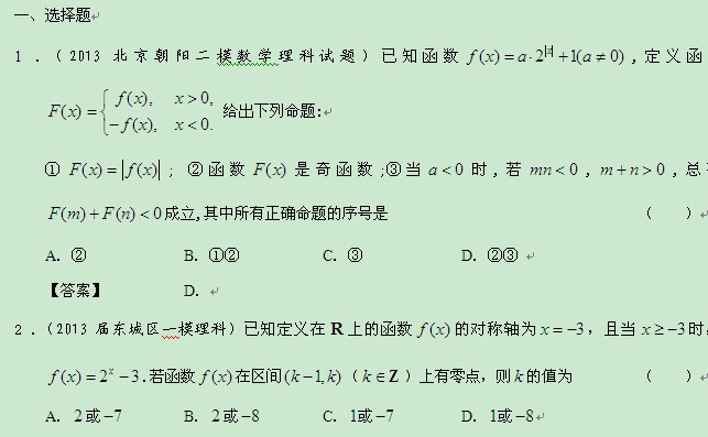 北京市2013届高三理科数学最新模拟试题分类汇编2:函数