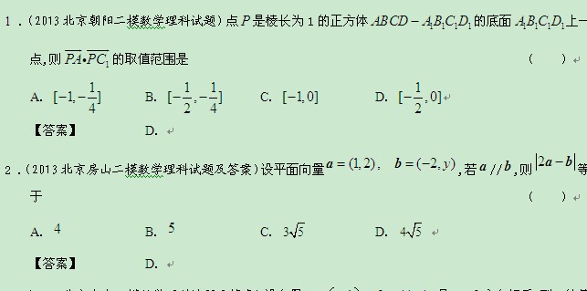 北京市2013届高三理科数学最新模拟试题分类汇编4:平面向量
