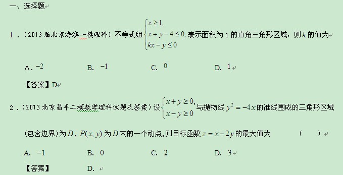 北京市2013届高三理科数学最新模拟试题分类汇编6:不等式
