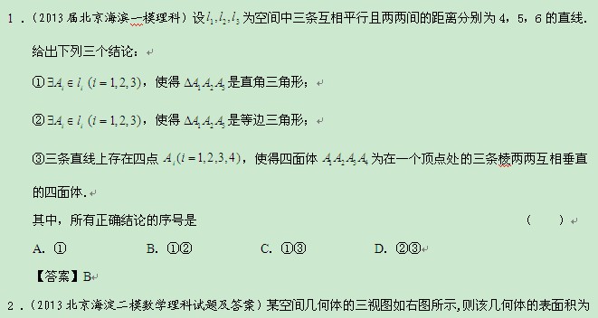 北京市2013届高三理科数学最新模拟试题分类汇编7:立体几何