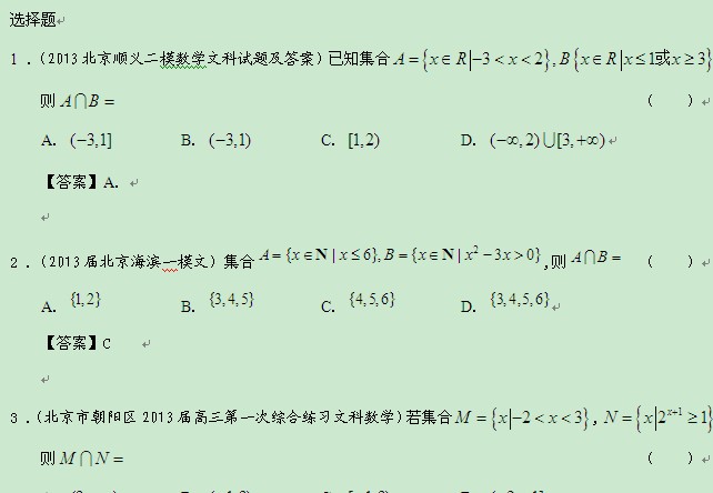北京市2013届高三最新文科数学模拟试题分类汇编1:集合