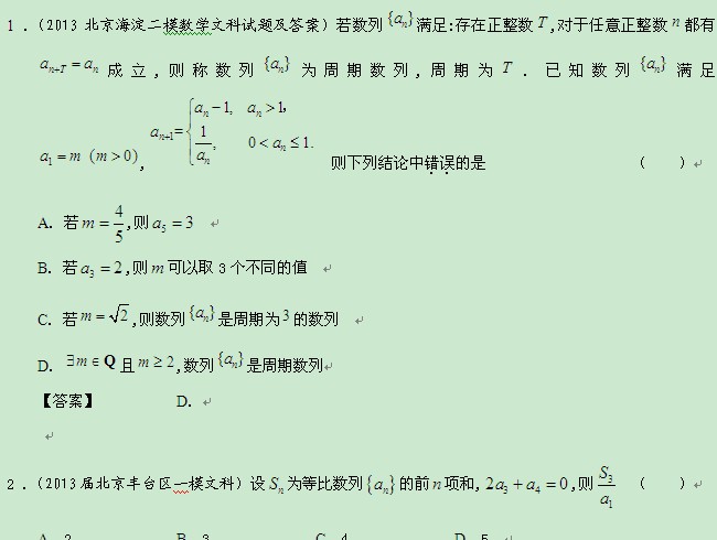 北京市2013届高三最新文科数学模拟试题分类汇编5:数列