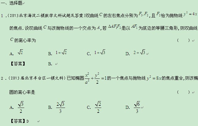 北京市2013届高三最新文科数学模拟试题分类汇编9:圆锥曲线