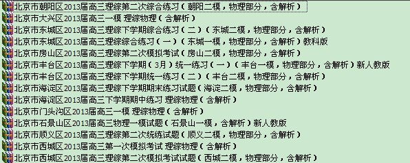 北京市各区2013届高三理综物理部分一、二模拟考试(含解析)【打包下载】