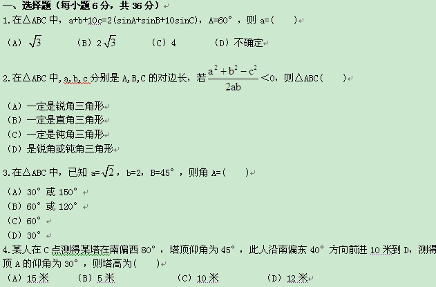 【金榜原创】2014年高考一轮复习考点热身训练:3.2解三角形
