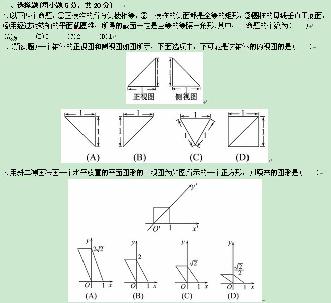 【金榜原创】2014年高考一轮复习考点热身训练:7.1空间几何体