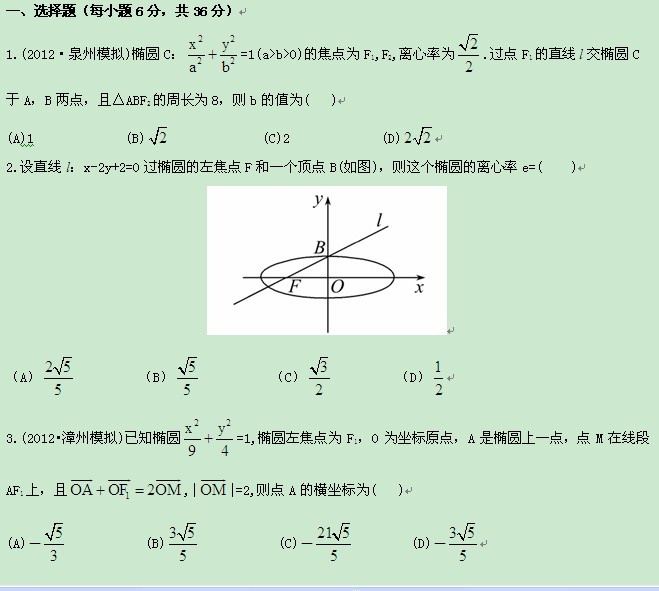 【金榜原创】2014年高考一轮复习考点热身训练:8.4椭 圆