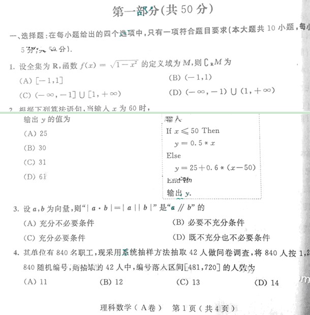 2013年普通高等学校招生全国统一考试陕西卷(数学理)扫描版含答案