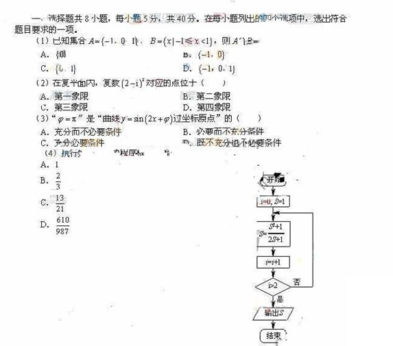 2013年普通高等学校招生全国统一考试北京卷(数学理)扫描版缺答案