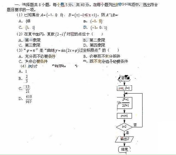 2013年普通高等学校招生全国统一考试北京卷(数学理)扫描解析版