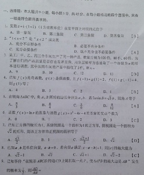 2013年普通高等学校招生全国统一考试湖南卷(数学文)扫描版含答案