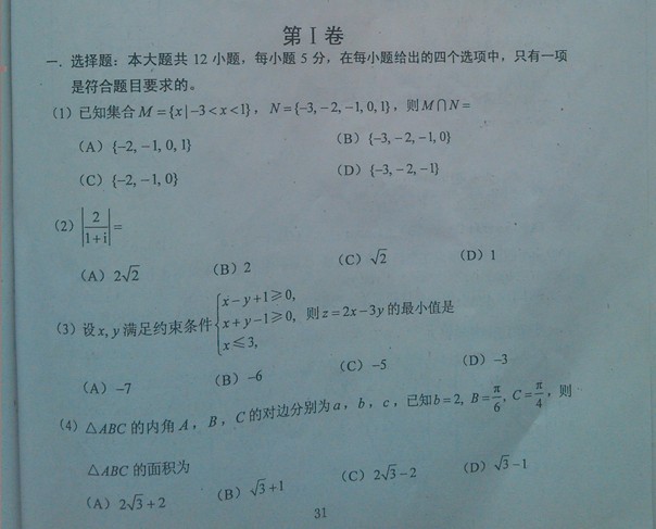 2013年普通高等学校招生全国统一考试新课标卷II(数学文)高清扫描版含答案