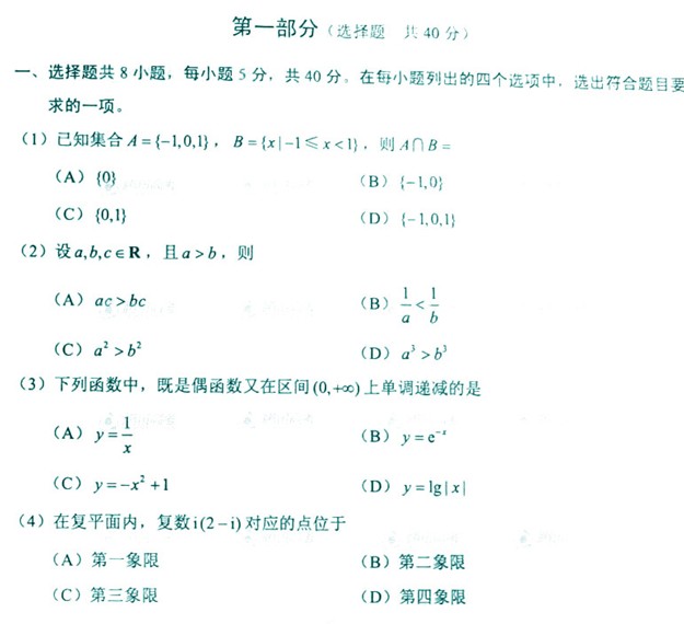 2013年普通高等学校招生全国统一考试北京卷(数学文)扫描版含答案