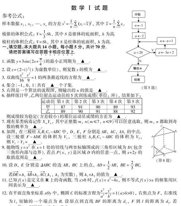 2013年普通高等学校招生全国统一招生考试江苏卷(数学)扫描版含答案(含附加题)