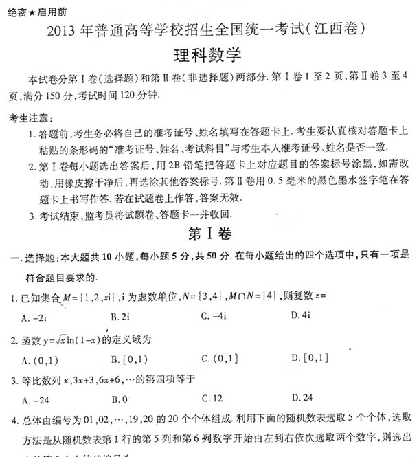 2013年普通高等学校招生全国统一考试江西卷(数学理)扫描版含答案