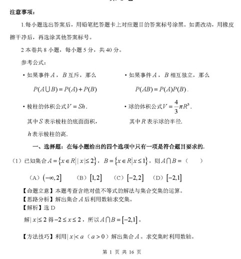 2013年普通高等学校招生全国统一考试天津卷(数学理)扫描解析版