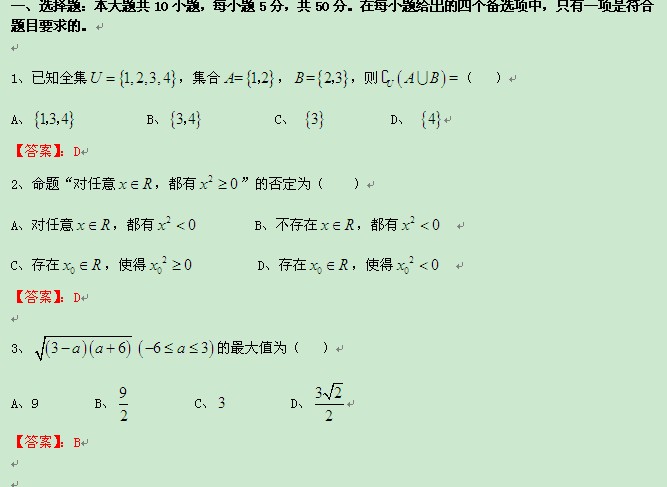 2013年普通高等学校招生全国统一考试重庆卷(数学理)Word版含答案