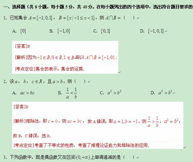 2013年普通高等学校招生全国统一考试北京卷(数学文)解析版