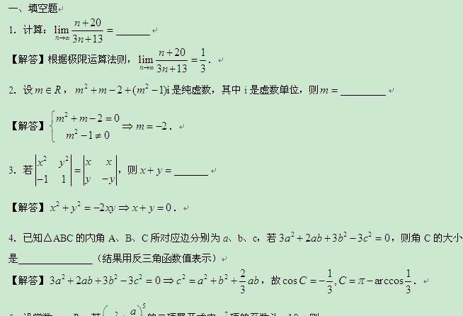 2013年普通高等学校招生全国统一考试上海卷(数学理)word版含答案