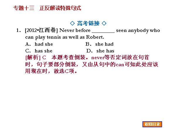 北师大版2014届高三英语一轮语法精品课件:专题13正反解读特殊句式