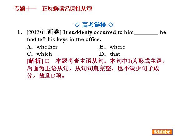 北师大版2014届高三英语一轮语法精品课件:专题11正反解读名词性从句