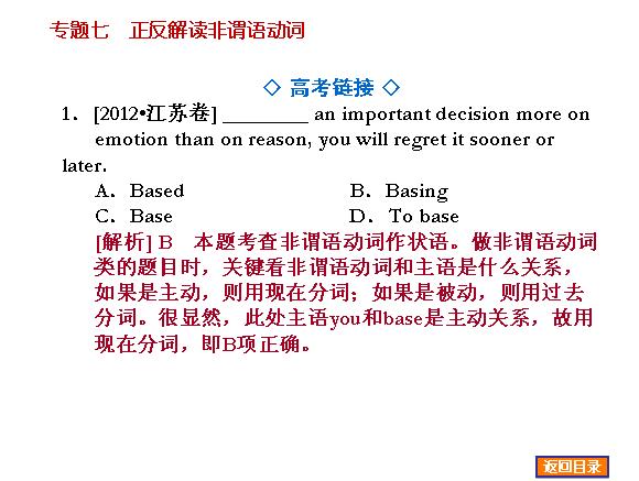 北师大版2014届高三英语一轮语法精品课件:专题7正反解读非谓语动词