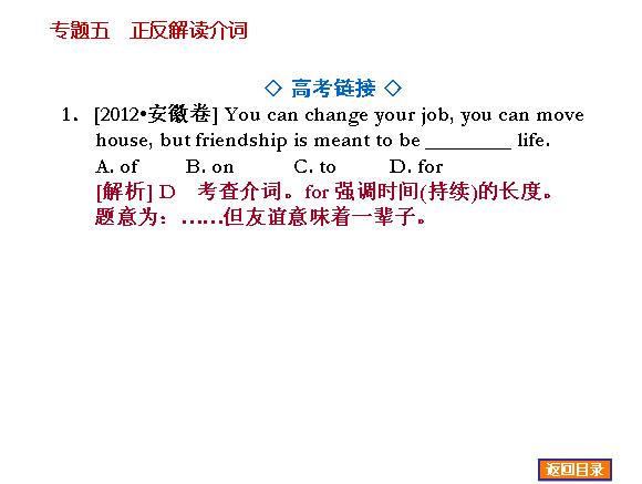 北师大版2014届高三英语一轮语法精品课件:专题5正反解读介词