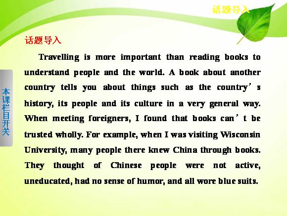 13-14学年英语人教版必修1课件:Unit 3 Period One Warming Up & Reading