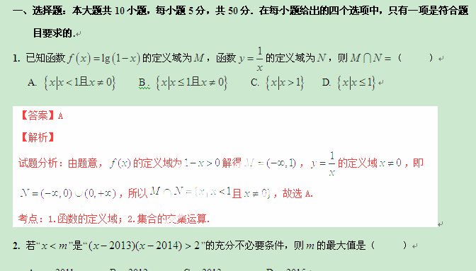 安徽省淮南二中2014届高三上学期第三次月考(数学理)含解析