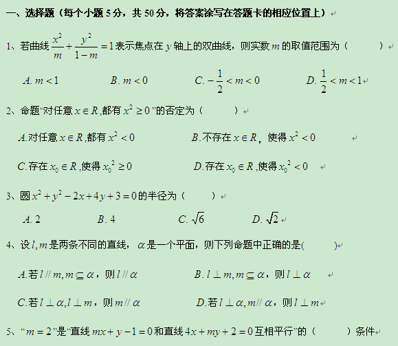 河北省衡水市安平中学2013-2014学年高二上学期期中考试(数学文)