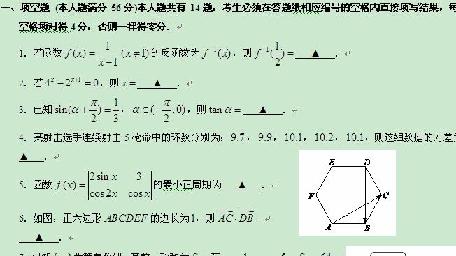 【2014上海松江一模】上海市松江区2014届高三上学期元月期末(一模)考试(数学文)