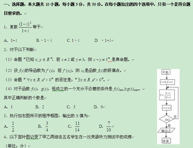 四川省眉山市2014届高三第一次诊断性考试试题(数学理)