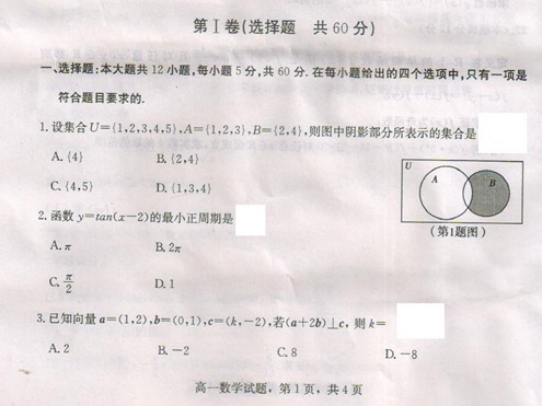 河北省邢台市2013-2014学年高一上学期期末考试(数学)扫描版