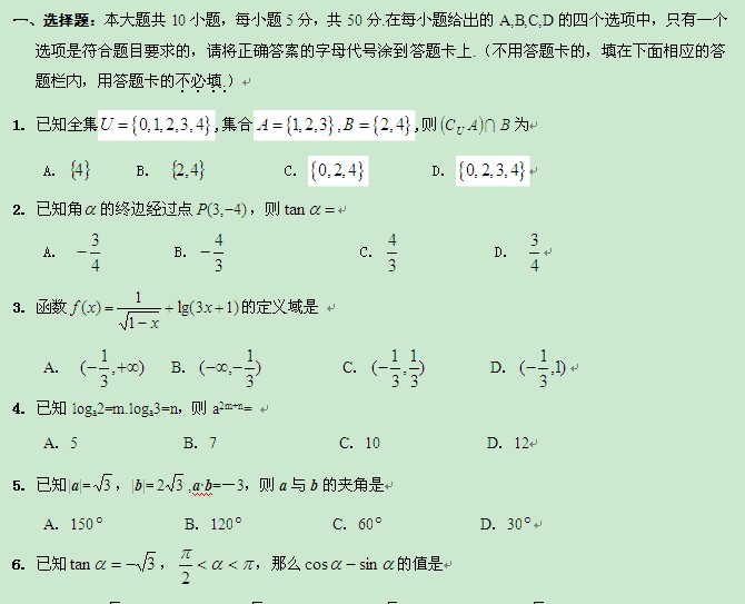安徽省蚌埠市2013-2014学年高一上学期期末考试(数学)