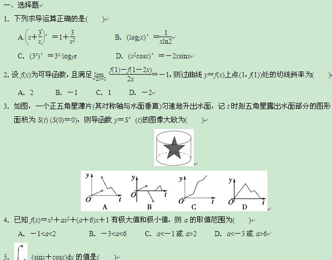 河北省邢台市第二中学2013-2014学年高二下学期第一次月考(数学理)