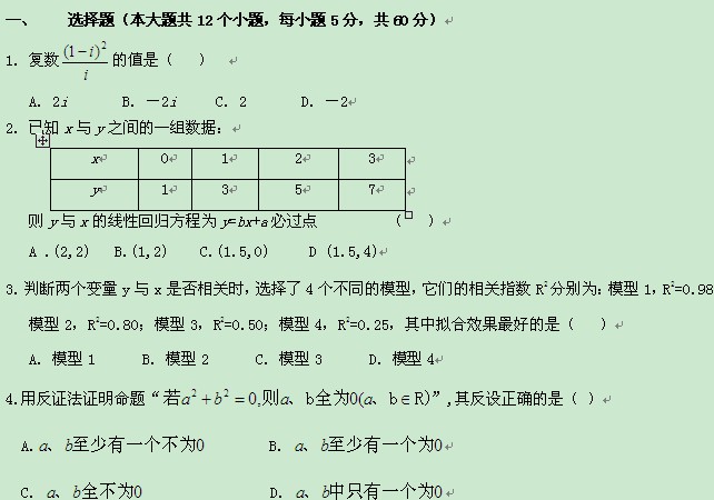 河北省邢台市第二中学2013-2014学年高二下学期第一次月考(数学文)缺答案