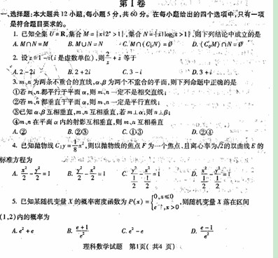 河南省豫南五市2014届高三下学期第一次模拟考试(数学理)扫描版