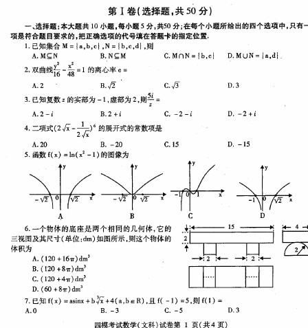 四川省内江市2014届高三第四次模拟考试(数学文)扫描版