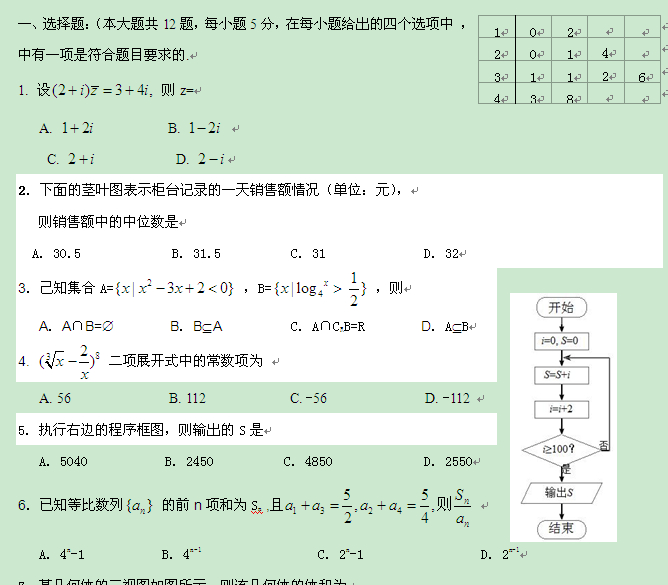 【2014唐山市一模】河北省唐山市2014届高三第一次模拟考试(数学理)