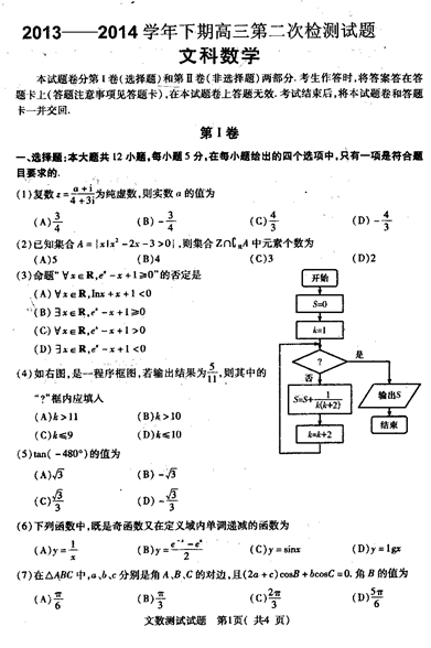河南省商水一高2014届高三下学期第二次检测试题(数学文) 扫描版