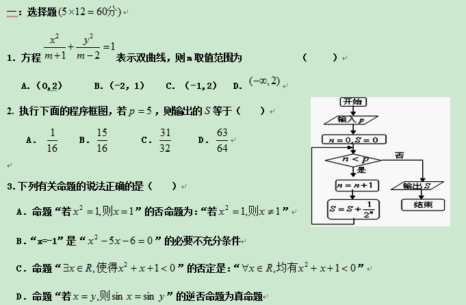 河南省驻马店市正阳高中2013-2014学年高二上学期第二次月考(数学理)缺答案