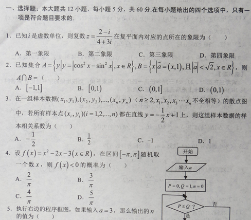 河南省中原名校2014届高三下学期第二次联考(数学文)(扫描版)