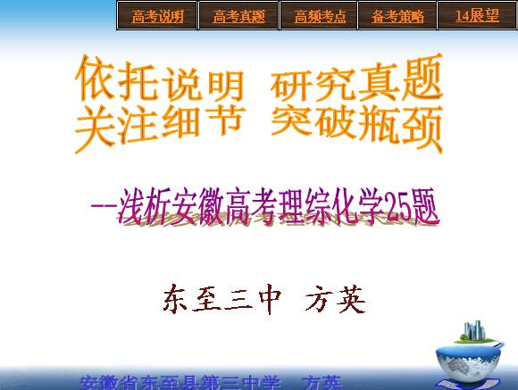 2014安徽七市高考化学研讨会—池州市东至三中 方英(浅析安徽高考理综化学25题)