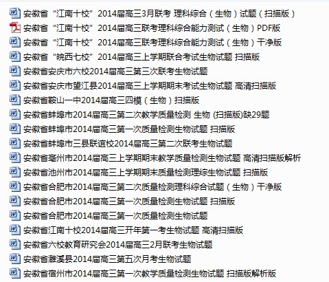 安徽各地区2014届高三模拟试卷(2月-4月)(生物)【打包下载】