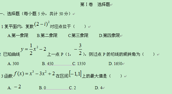 四川省乐山一中2013-2014学年高二下学期第一阶段考试(数学理)