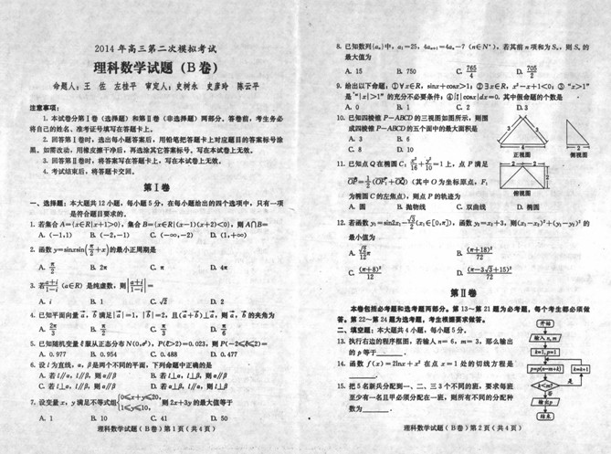 【2014保定市二模】河北省保定市2014届高三第二次模拟考试(数学理)B卷 扫描版