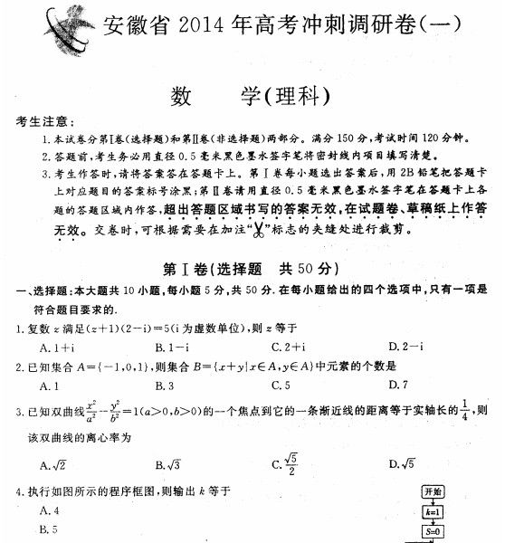 安徽省2014届高三高考冲刺调研卷数学(理)试题(一) 扫描版